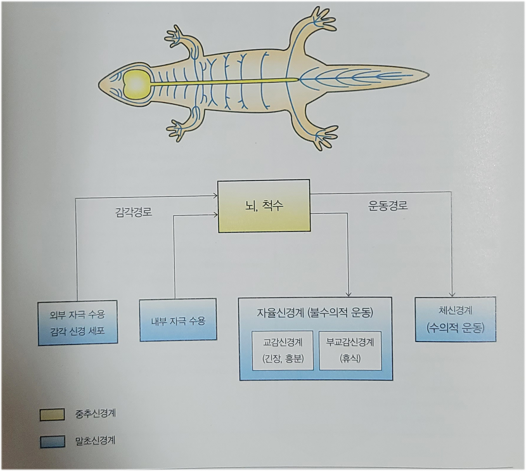 동물의신경계는 <중추 신경계>와 <말초 신경계>로 구분된다.