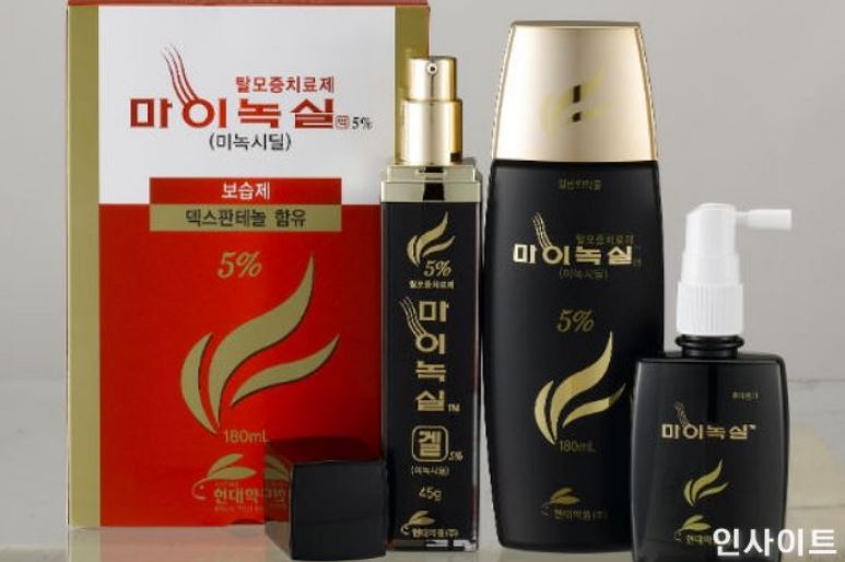 국내에서 광고를 통해 가장 널리 알려진 제품은 현대약품의 마이녹실 액, 동국제약의 판시딜 액이 있습니다.