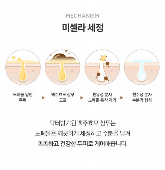 건조함 없는 두피수분 케어 세정 <미셀라 기술>을 적용하였는데, 물과 비슷한 친수성 분자와 기름과 비슷한 친유성 분자를 모두 가진 원형태의 입자로 친유성 분자가 두피의 노폐물을 흡착해 깨끗하게 제거하고 친수성 분자가 두피에 수분을 공급해 촉촉하게 해줍니다.