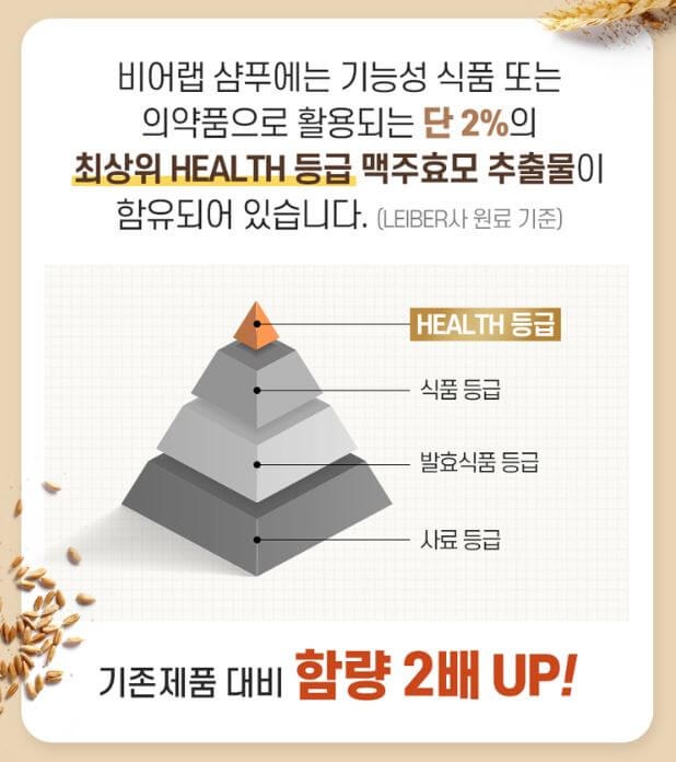 맥주의 본고장 독일에서 탄생한 비어랩 맥주효모는 60년 전통 LEIBER사의 상위 2% 헬스등급 맥주효모 99.45%함유를 비롯해, 비타민 B군, 시스틴, 비오틴을 함유하고 있습니다.