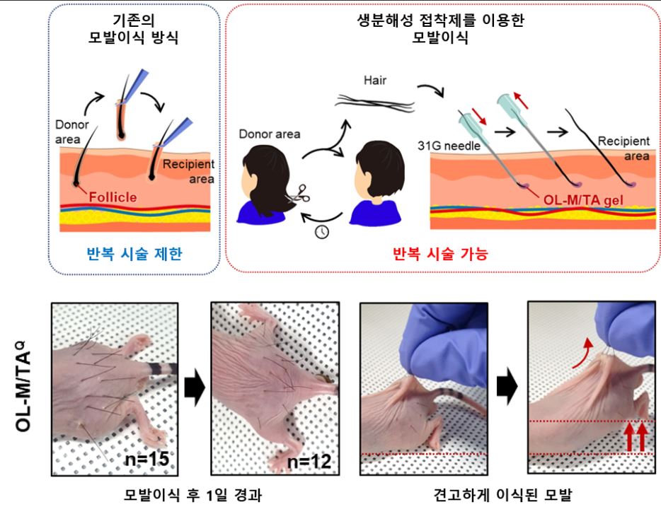 머리카락 잘라 심는 모발이식용 무해한 생체 접착제를 개발!!